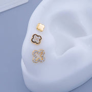 Set de 3 pares de Aretes piercing con zirconia trebol baño 18k