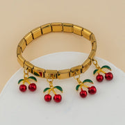 Pulsera elastica estilo Italiana acero inoxidable y colgantes de cereza